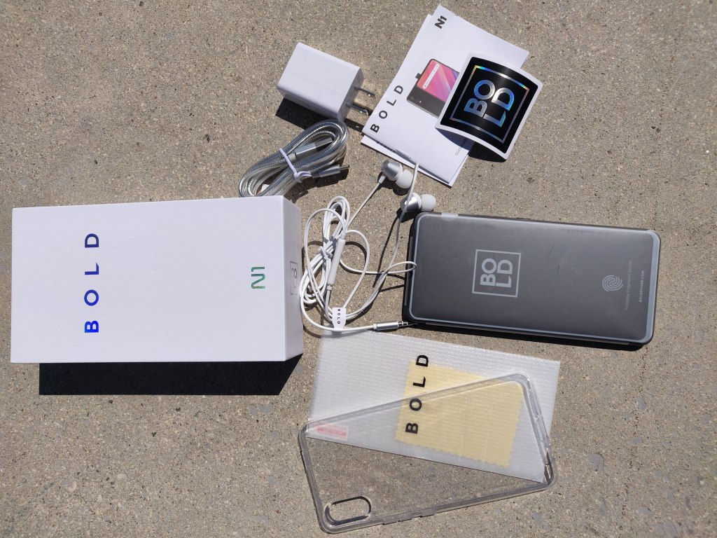 At launch the BOLD N1 comes in one color, Raven Black. The device itself is made from a brushed aluminum frame wedged between a curved Gorilla Glass 5 front display, and a glossy, curved glass rear panel. The device sports a 6.4 inch AMOLED display, with a 1080 x 2340 resolution (403ppi), in a 19.5:9 aspect ratio. An optical in-display fingerprint scanner sits beneath the display. The device’s bezels are razor thin, with a small chin on the bottom device. Overall screen to body ratio is approximately 92%. Overall, the N1 is a solid, sexy piece of tech, with its brushed aluminum frame and glossy, curved back panel. The phone itself is a fingerprint magnet, but is still very, pleasing to hold. Measuring in at 158.7 x 74.1 x 8.6 mm, and weighing 182g, the phone is lightweight and easily pocketable, although it is slippery if a case is not used (luckily BOLD provides a clear TPU case, and a tempered glass screen protector in the box, along with a pair of wired earbuds, a USB fast charging brick and cable and a BOLD branded sticker). Under the hood, the BOLD N1 is run by a MediaTek Helio P70 octa-core processor, coupled with 128 GB of internal storage and 4 GB of RAM. The internal storage is expandable via MicroSD, but more about that later.